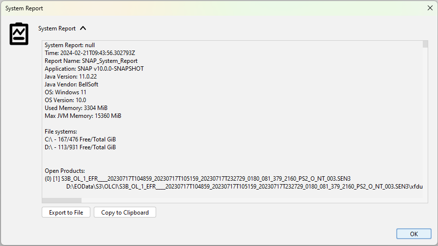 Create System Report. The following dialog is shown and