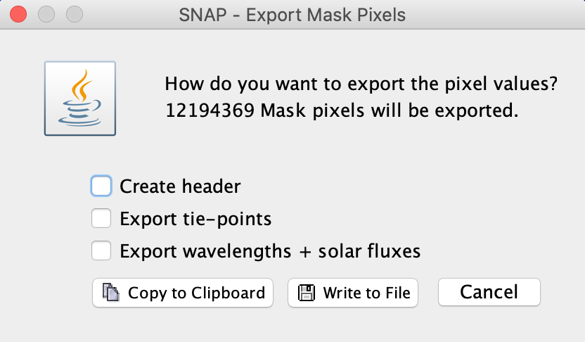 The "Copy to Clipboard" option will copy the mask pixel values to the clipboard. This may take a few moments, depending on the amount of pixels.