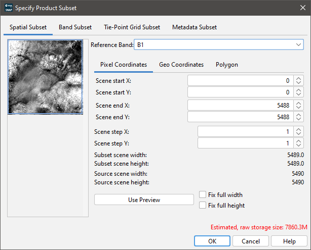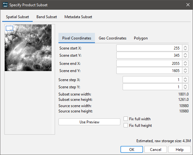 This tab is used to select the bands you want to have in your product subset.