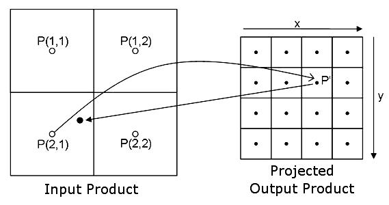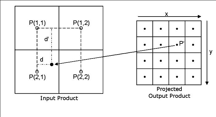 | Image is sharper compared to Bi-linear Interpolation | New values are calculated which are not present in the input product |
