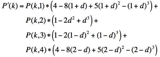 Calculation of the new pixel value is performed by weighting the 16 surrounding pixels.