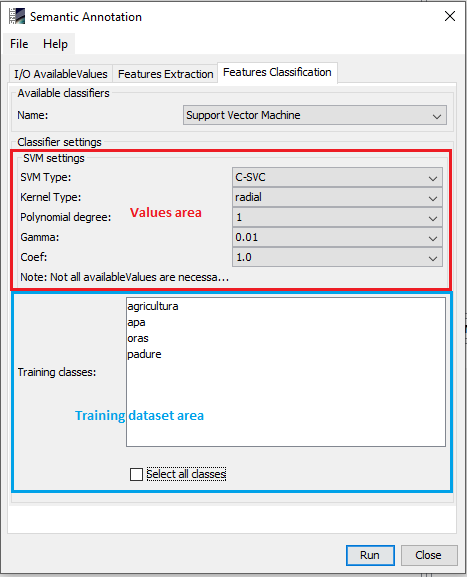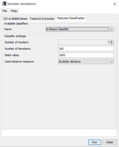 Feature Classification tab allows user to select and set the classifier used to analyse the chosen product.