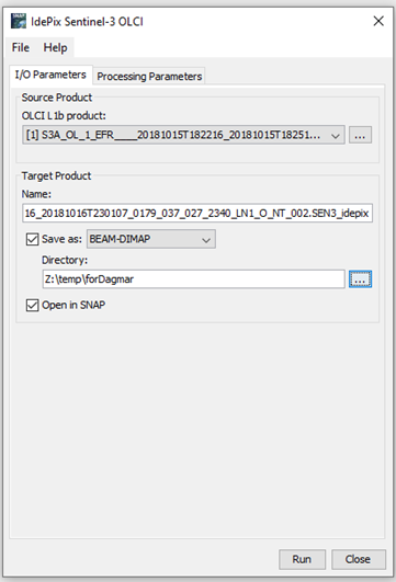 Open in SNAP: Used to specify whether the target product should be opened in the Sentinel Toolbox. When the target product is not saved, it is opened in the Sentinel Toolbox automatically.